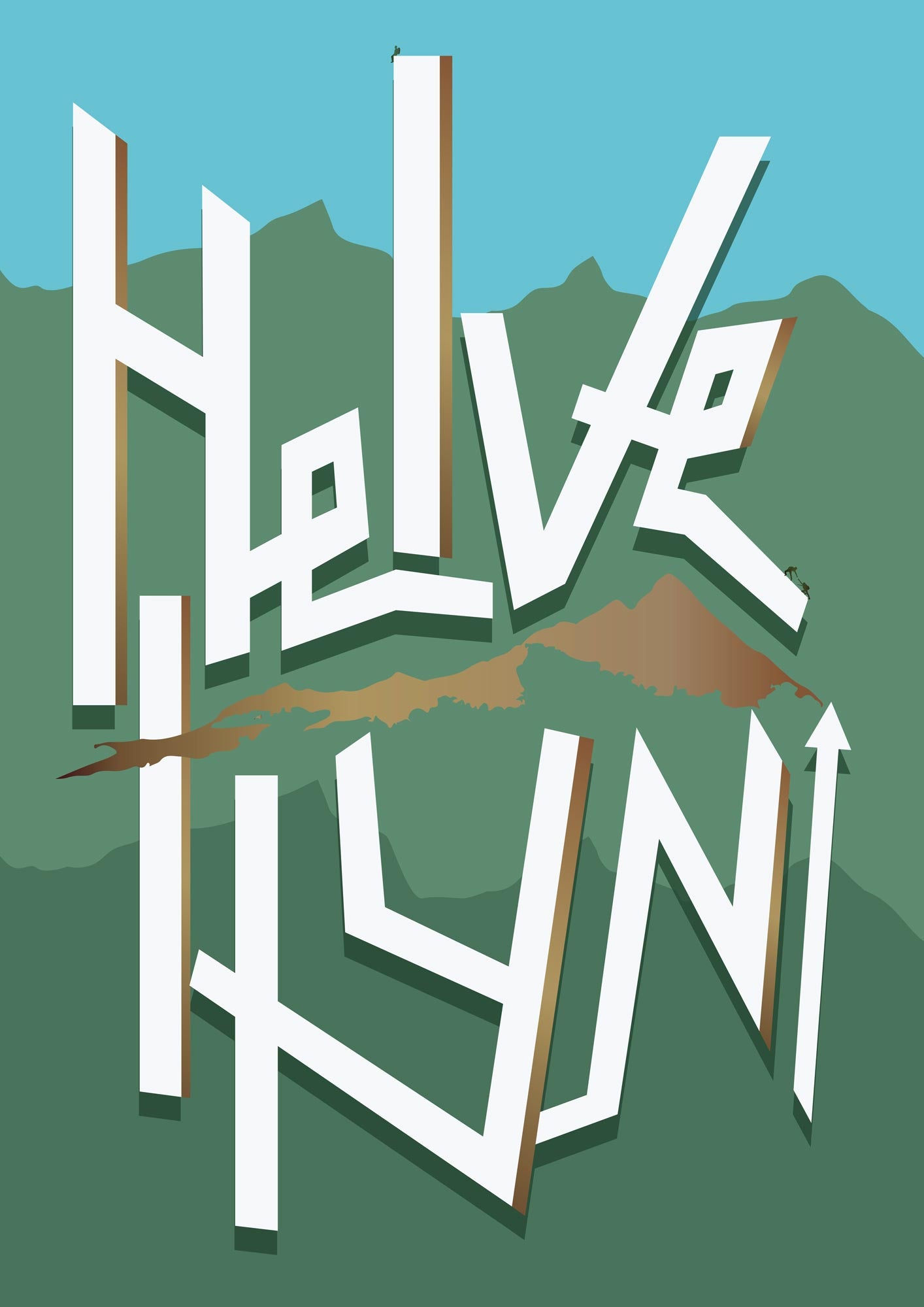 Frederick John's design combines the elegance of typography with the raw majesty of Helvellyn. The bold, stylish rendering of the mountain's name serves as the centerpiece, its letters intricately designed to mirror the contours and character of the peak itself. Beneath the type lies a silhouette of the Helvellyn ridge profile.