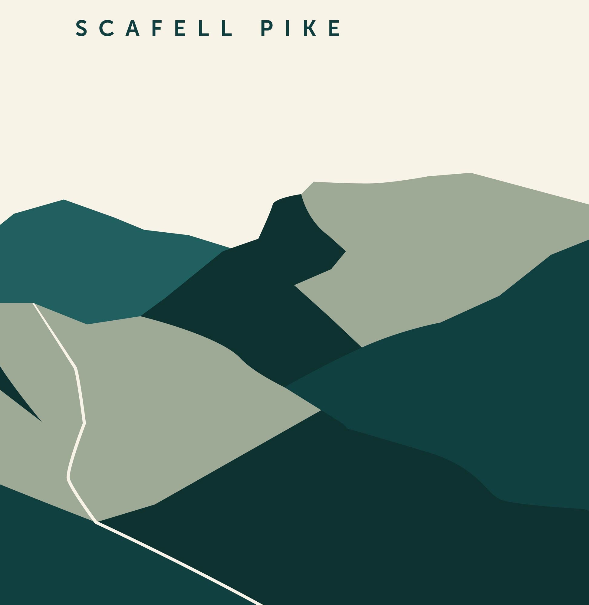 A minimal, stylised illustration of Scafell Pike by designer and illustrator Laura Crompton, aka The Wild Kind.